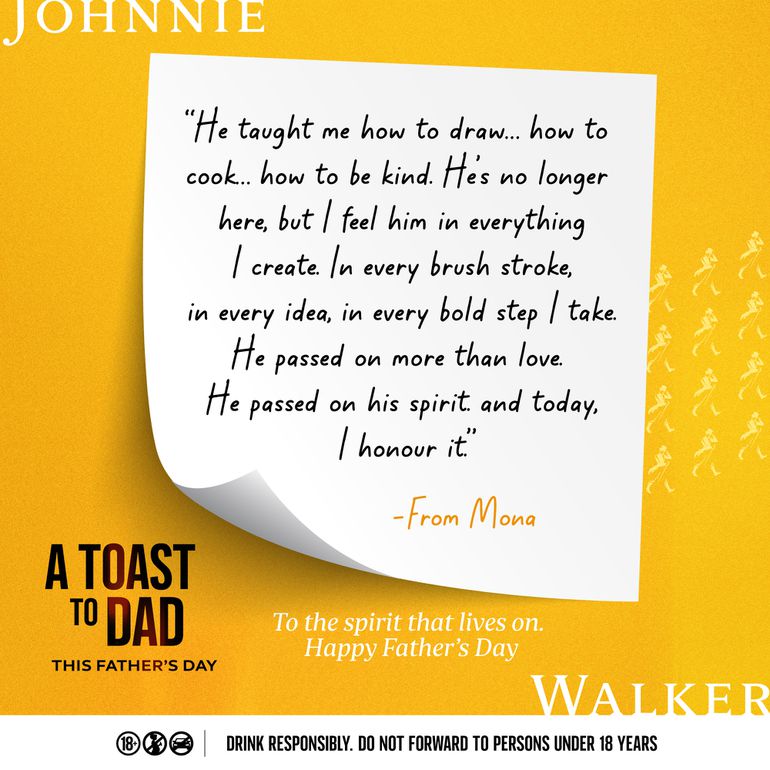 Through her art, her career, and her values, Mona carries her father’s legacy forward, a perfect reflection of the spirit behind the Johnnie Walker Father’s Day campaign.