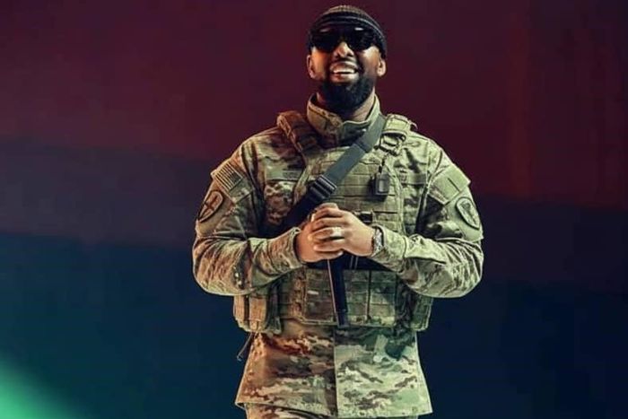 Eddy Kenzo has come under heavy criticism after posting a photo of himself performing on stage dressed in full military-style combat gear.