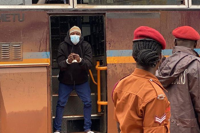 The 30-year-old singer, a father of three, appeared alongside his bodyguard Julio, whose real name is Julius Mugabi.