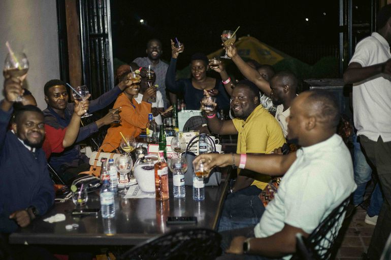 done, revellers swapped cocktail glasses for shot glasses in a shift from relaxed sophistication to high-octane celebration.