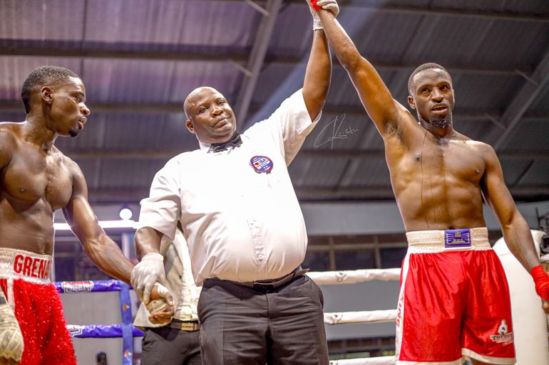 Singer Rickman Manrick emerged victorious against fellow artiste Grenade Official in a boxing match organised to resolve their longstanding feud.