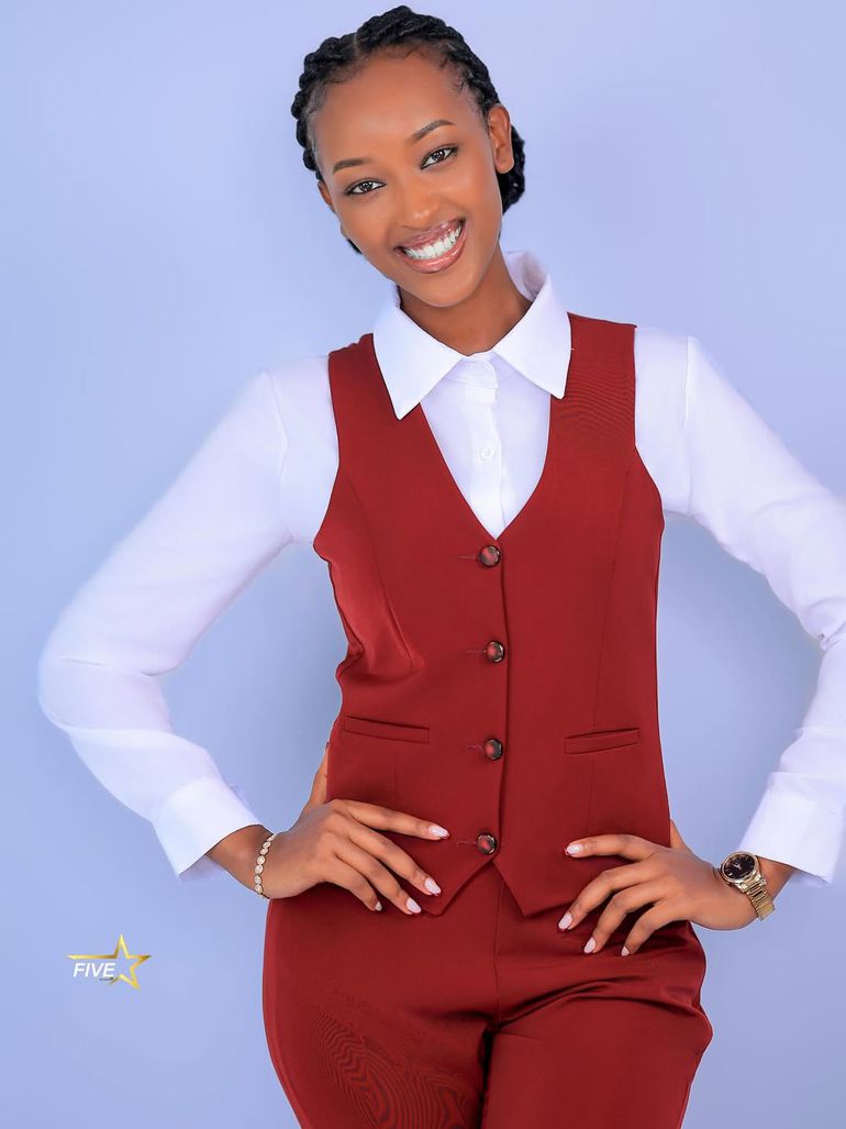 Similarly, beauty queen Trivia Muhoza chose a sharp, sophisticated path that leaned into a "power dressing" vibe. She donned a tailored maroon waistcoat over a pristine white collared shirt, proving that elegance can be found in minimalist, corporate-inspired styles just as effectively as in flowing evening gowns.