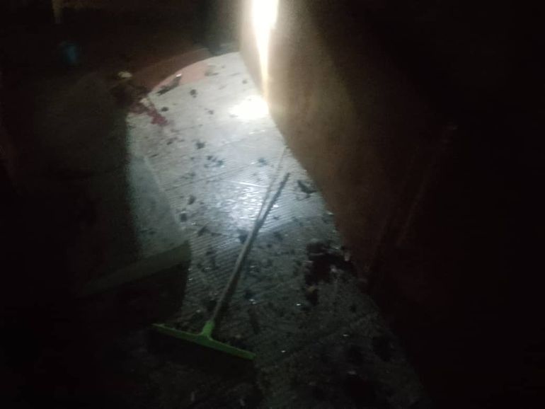 The area was littered with glass debris and bloodstains.