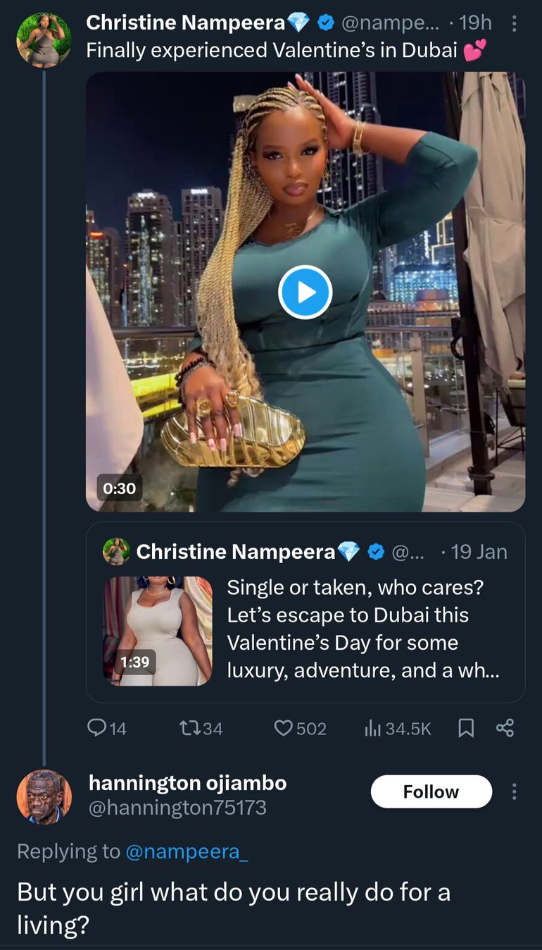 Christine Nampeera has ignited a heated discussion on X after revealing her source of income.