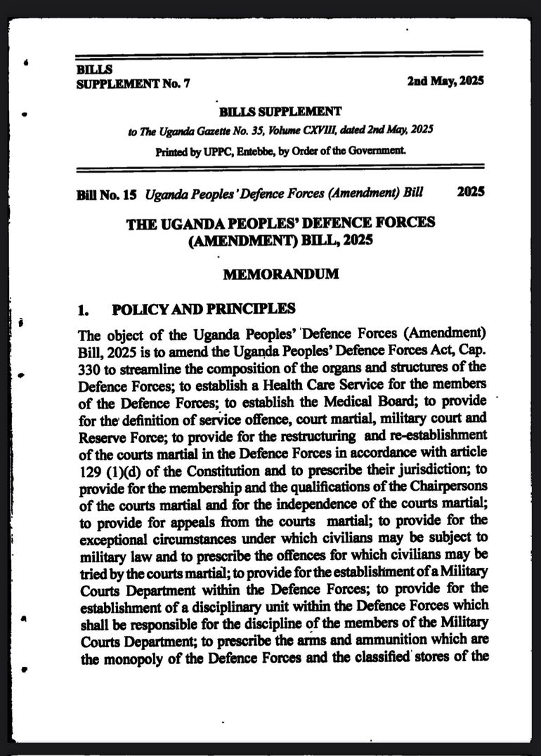 The Ugandan Government is moving forward with the highly contentious UPDF (Amendment) Bill, 2025, which is set to be tabled before Parliament for consideration.