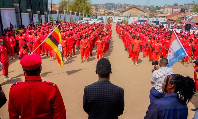 NUP recently held a ‘foot-soldiers parade’ with their supporters and mobilisers dressed in military boots and red combat uniforms decorated to mimic military attires.