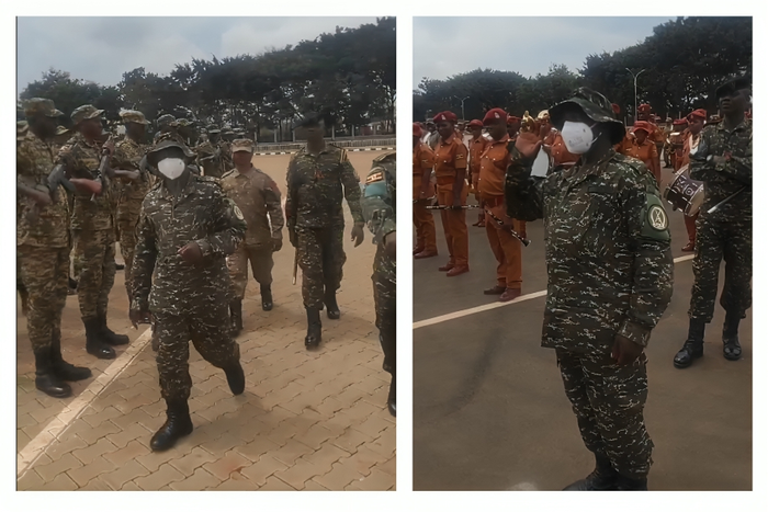 The video was taken of the officer inspecting the guard of honour during the band parade dry-run ahead of tomorrow’s 63rd Independence Day celebrations at the Kololo Independence Day celebrations.