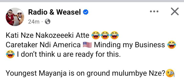 Weasel, who is currently in the US with his ailing brother Jose Chameleone, confirmed the attack on his home, wondering why he was targeted.