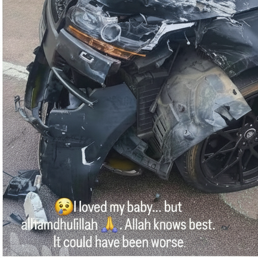 She shared a series of distressing images with her followers yesterday, revealing that her beloved ride had been involved in a significant crash.